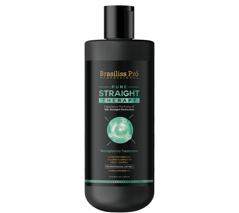 Brasiliss Pro Pure Straight Therapy is a professional-grade Nanoplastia treatment that uses advanced nanotechnology to deeply penetrate and restructure hair fibers, delivering long-lasting, silk-straight results. Formulated in Brazil, it effectively eliminates frizz, reduces volume, and strengthens hair without harsh chemicals, making it a safer alternative to traditional straightening methods. Ideal for salon use, it leaves hair smooth, shiny, and manageable for up to several months.